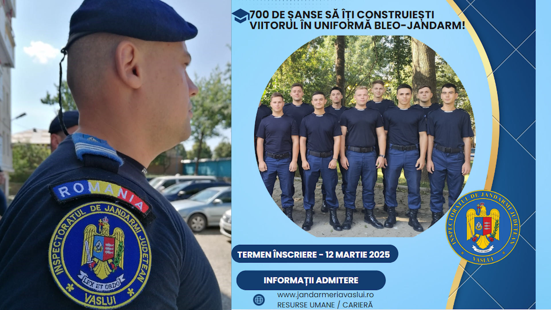 Potrivit reprezentanților Inspectoratului de Jandarmi Județean(IJJ) Vaslui, în perioada 24 februarie – 12 martie 2025, instituția desfășoară o nouă campanie de recrutare pentru tinerii care aspiră la o carieră în cadrul Jandarmeriei Române. Sunt disponibile 700 de locuri pentru candidați, împărțite între două instituții de învățământ: