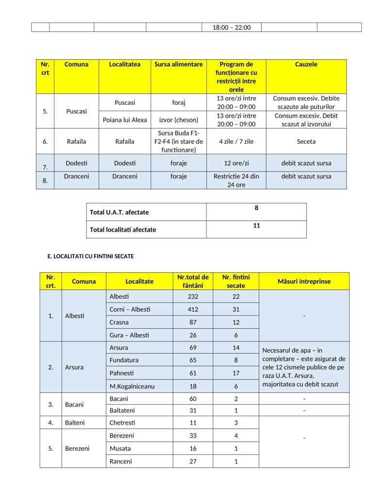 4. Monitorizarea și actualizarea săptămânală a situației privind asigurarea alimentării cu apă a populației din localitățile care dispun de sisteme centralizate.