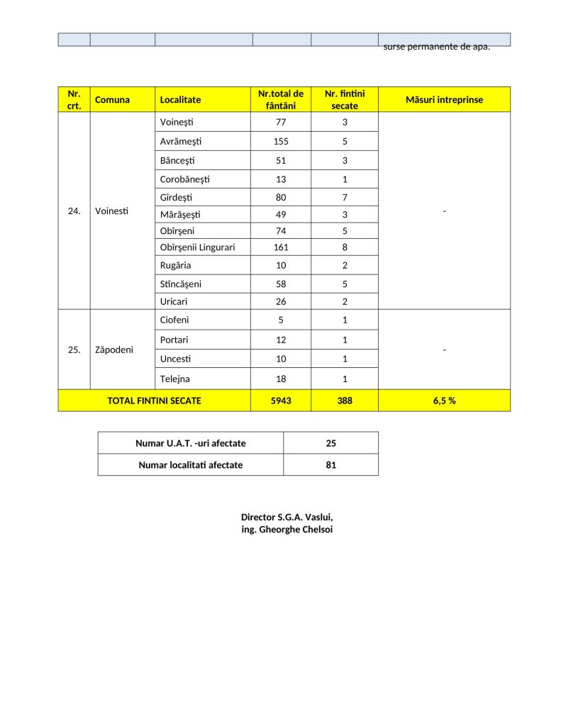 ”Acțiunea se desfășoară cu raportarea datelor hidrologice de două ori pe zi la dispeceratul unității. Coordonarea acțiunii este făcută zilnic de către dispecerul de serviciu, care asigură permanența 24 din 24 de ore”, ne-a declarat ing. Gheorghe Chelsoi, directorul S.G.A. Vaslui.