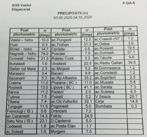 În județul Vaslui s-au înregistrat cantități însemnate de precipitații, cumulat în ultimele 24 de ore la postul pluviometric Negrești s-au consemnat 74.2 l/mp(TABEL).