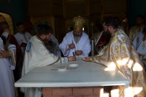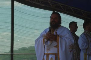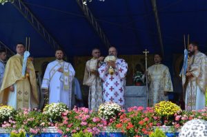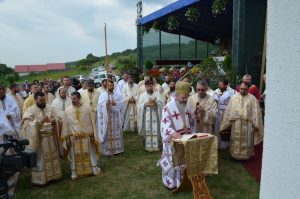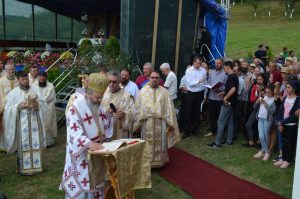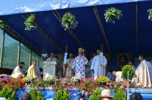 A urmat apoi Sfânta Liturghie, săvârşită pe o scenă amplasată în apropierea locaşului de cult.