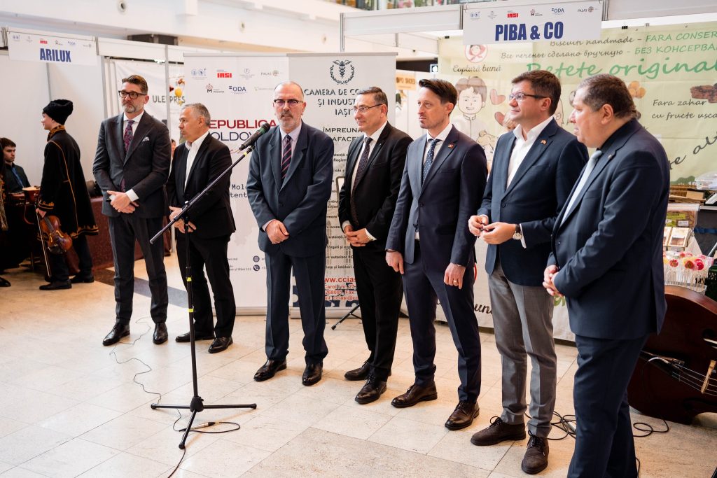 În perioada 7-9 noiembrie, 50 de firme din Republica Moldova (RM) și-au prezentat produsele și serviciile în atriumul Palas Iași, aducând viticultură, textile, procesare alimentară, artizanat și multe alte domenii valoroase în fața publicului și partenerilor de afaceri. Dintre oficialii care au participat la inaugurare îi menționăm pe Ionel Constantin, președintele Camerei de Comerț, Industrie și Agricultură (CCIA) Vaslui, Sergiu Harea, președintele CCI a RM, Costel Alexe, președintele Consiliului Județean Iași, Paul Butnariu, președintele CCI Iași, Excelența Sa Cristian-Leon Țurcanu, ambasadorul României la Chișinău, Ion Coșer, Consulul General al RM la Iași, Petru Movilă, consilier al primarului municipiului Iași.
