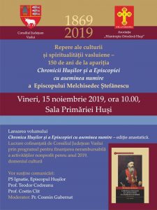 Evenimentul este parte a proiectului „Repere ale culturii și spiritualității vasluiene”, derulat de Asociația „Filantropia Ortodoxă” Huși și cofinanțat de Consiliul Județean Vaslui, prin programul judeţean pentru finanţarea nerambursabilă a activităţilor nonprofit de interes general pentru anul 2019, domeniul cultură.