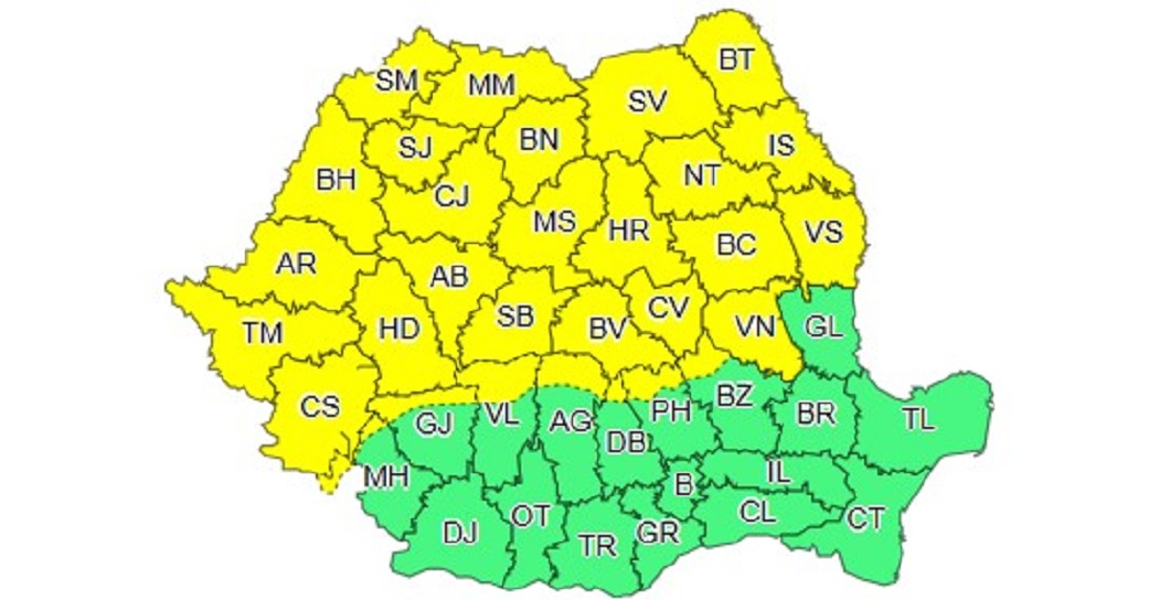 Administrația Națională de Meteorologie (ANM) a emis o avertizare COD GALBEN de instabilitate atmosferică accentuată pentru a doua parte a zilei de astăzi, valabilă până mâine, 28 iunie, ora 2. Sunt așteptate fenomene precum:
