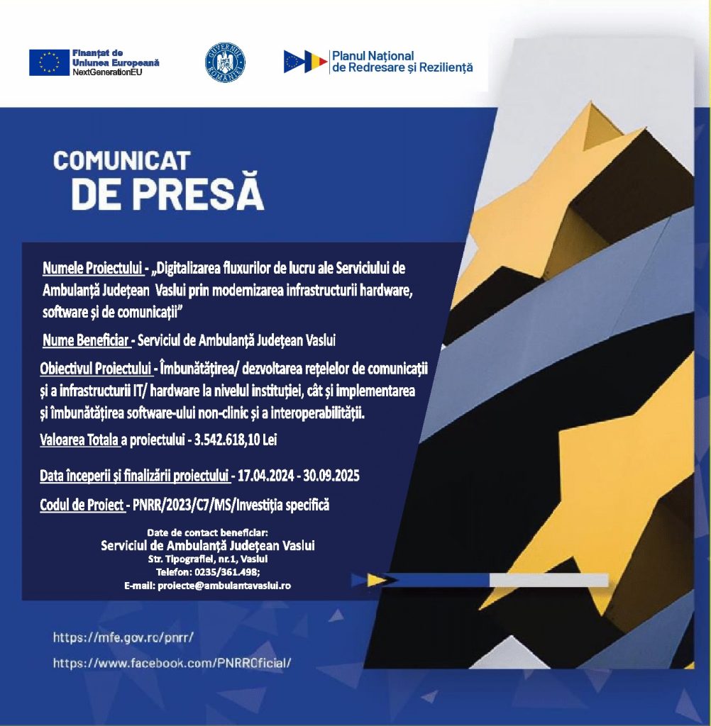 Home Anunturi Comunicat de presă-PNRR-Serviciul de Ambulanță Județean Vaslui