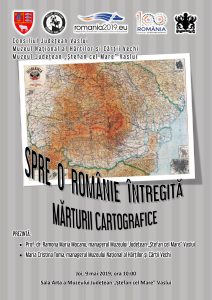 O consecință a Conferinței de Pace de la Paris a fost redesenarea hărții Europei. Muzeul Județean „Ștefan cel Mare” Vaslui dorește să ilustreze acest fapt prin intermediul hărților, martori grăitori ai evoluției acestor evenimente. Prin colaborarea cu Muzeului Național al Hărților şi Cărții Vechi vă prezentăm Expoziția „Spre o Românie Întregită – mărturii cartografice” ce va putea fi vizitată până la data de 23 iunie 2019”, a declarat organizatorul acestui eveniment, Ramona Maria Mocanu, directorul Muzeului Județean „Ștefan cel Mare” Vaslui.