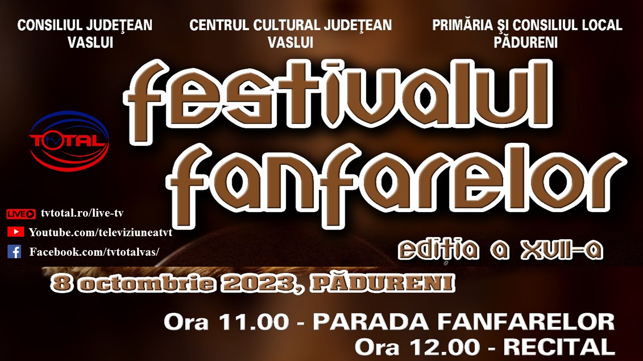 Postul de televiziune TV Total Vaslui intenționează să transmită în direct, integral, acest festival de mare interes regional, pe canalele sale: tvtotal.ro/live-tv, Youtube.com/televiziuneatvt și Facebook.com/tvtotalvas/. Având în vedere cheltuielile importante pe care le implică un asemenea demers, solicităm vasluienilor care ne urmăresc în mod curent să ne comunice prin mesaje pe canalele menționate dacă apreciază ca oportună o asemenea transmisiune.