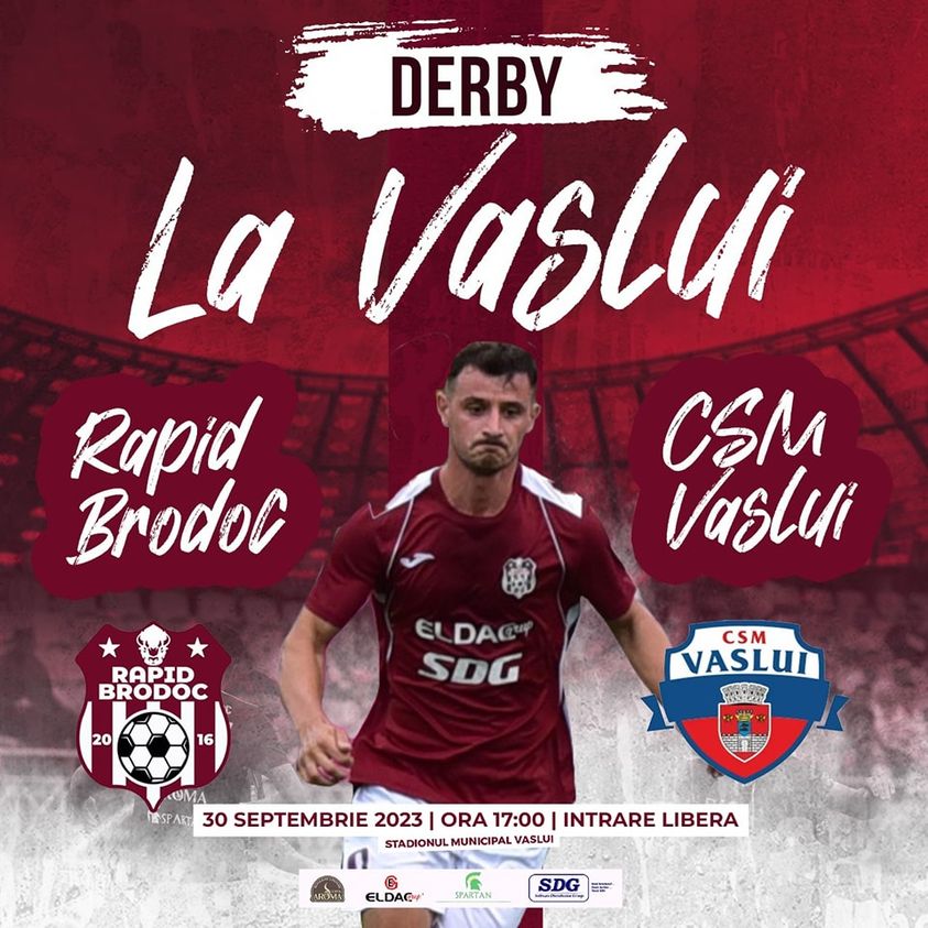 Sâmbătă, 30 septembrie, pe Stadionul Municipal din Vaslui se va desfășura mult așteptatul derby local dintre Rapid Brodoc și CSM Vaslui. Partida va începe la ora 17, iar intrarea spectatorilor va fi liberă!