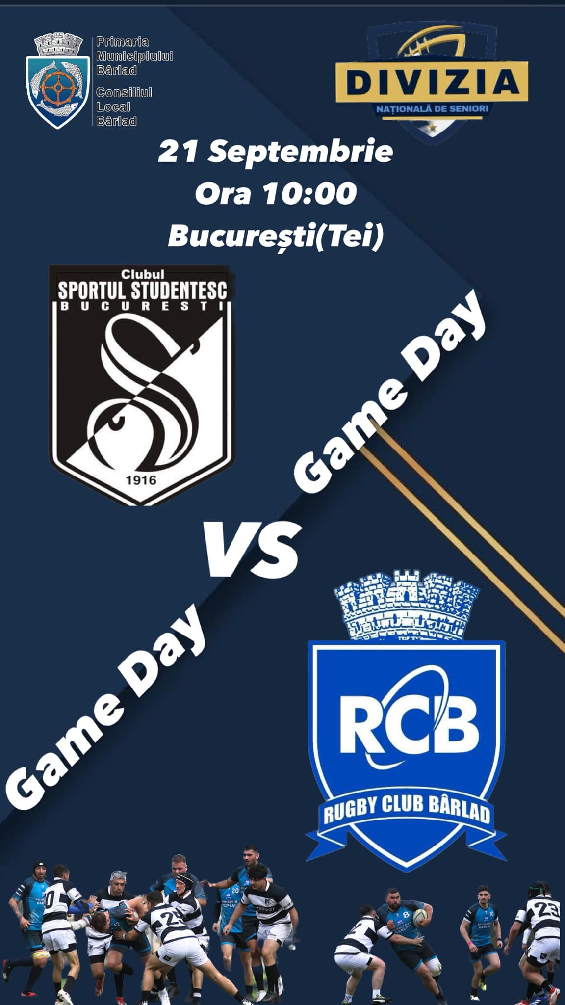 Sâmbătă, 21 septembrie, Divizia Națională de Seniori la rugby se reia cu etapa a 10-a. Cei de la RC Bârlad vor merge la București, pentru a-i înfrunta pe jucătorii Sportului Studențesc. Meciul se va disputa pe Stadionul Tei, de la ora 10.