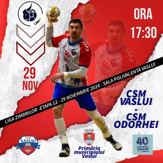 Vasluienii iubitori de sport sunt așteptați la Sala Polivalentă pentru a se bucura de handbal și pentru a-i susține pe băieții noștri, care vor încerca să ofere un joc bun și, bineînțeles, să câștige.
