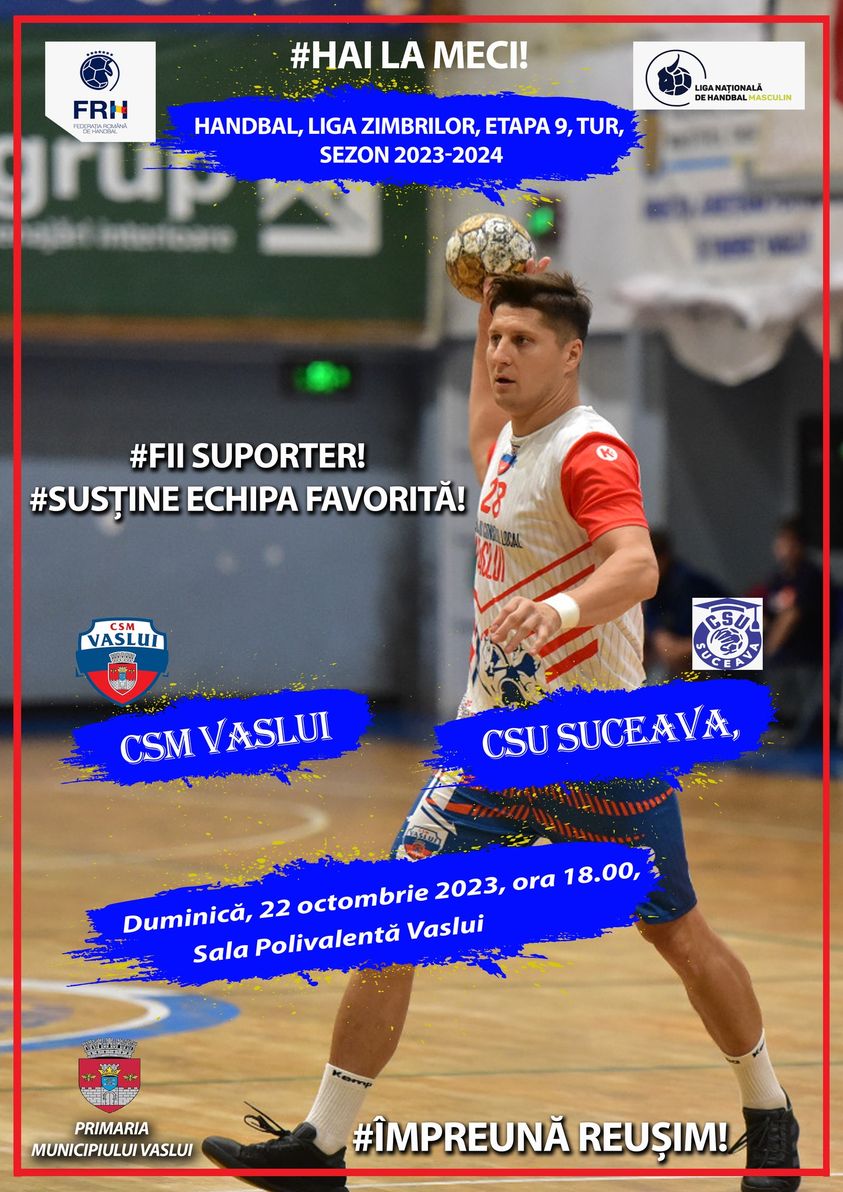 Handbal, Liga Zimbrilor, etapa a 9-a: CSM Vaslui – CSU Suceava (duminică, 22 octombrie)