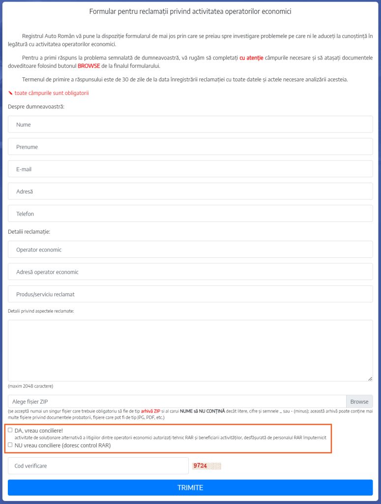 Registrul Auto Român (R.A.R.) a pus la punct o soluție rapidă de rezolvare a litigiilor dintre operatorii economici din piața auto și petenții nemulțumiți de prestarea serviciilor. Astfel, deoarece interesul principal al unui petent este acela de a rezolva o situație care a stat la baza reclamației, se propune o modalitate alternativă de soluționare a litigiilor cu operatorii economici autorizați tehnic R.A.R., care poate economisi timp și resurse: CONCILIEREA.