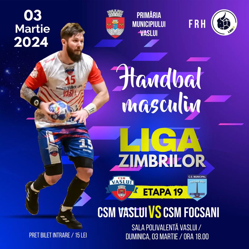 Duminică, de la ora 18, CSM Vaslui (locul 14 în clasament) continuă returul Ligii Zimbrilor cu o altă ”finală”, întâlnind acasă CSM Focșani 2007 (locul 9), în etapa a XIX-a. Multă baftă!
