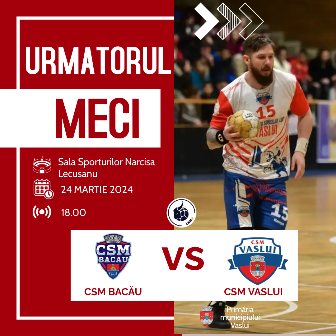 Duminică, de la ora 18, CSM Vaslui continuă returul Ligii Zimbrilor întâlnind în deplasare CSM Bacău, în etapa a XX-a. Multă baftă!