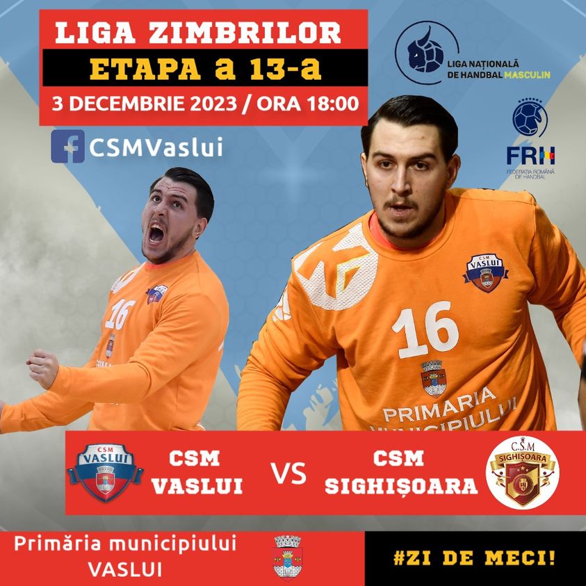 Duminică, 3 decembrie, de la ora 18, la Sala Sporturilor, CSM Vaslui încheie turul cu un derby al subsolului clasamentului, întâlnind penultima clasată, CSM Sighișoara. Este nu doar un meci, ci o șansă pentru a-și demonstra spiritul de echipă și dorința de a-și îndeplini obiectivul, rămânerea în prima Ligă Națională. Sperăm ca ai noștri să lupte până la final pentru victorie. Publicul a fost întotdeauna alături de CSM Vaslui, indiferent de rezultat.