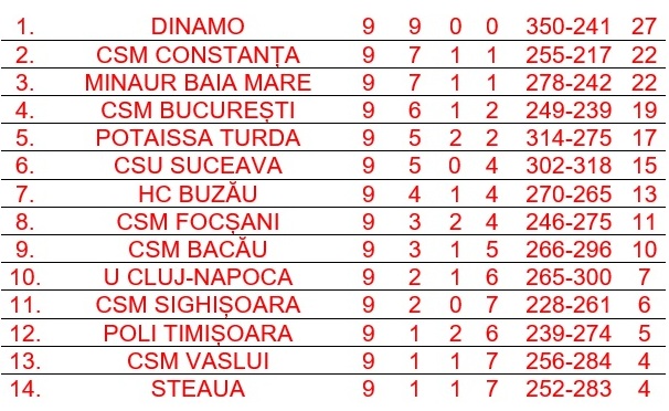 Dinamo București – Potaissa Turda (ora 17.30, live Pro Arena, arbitri Marian Drăghici / Ionuț Drăguț, observator Georgiana Doană).