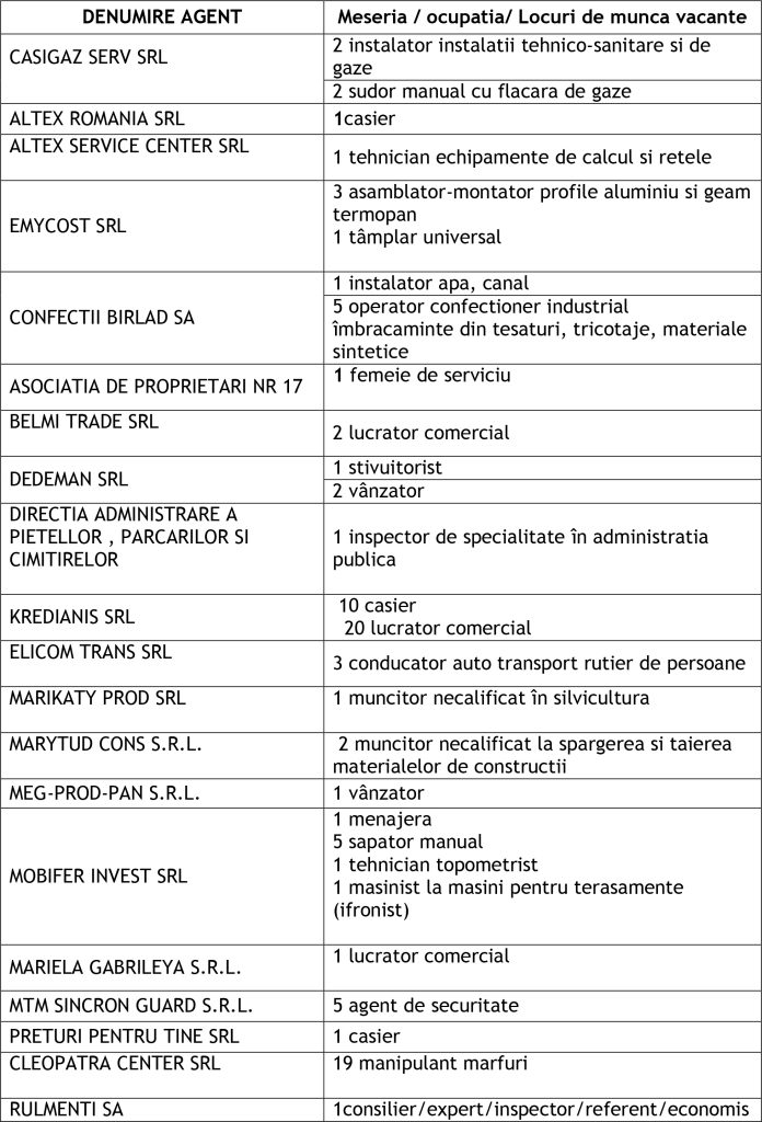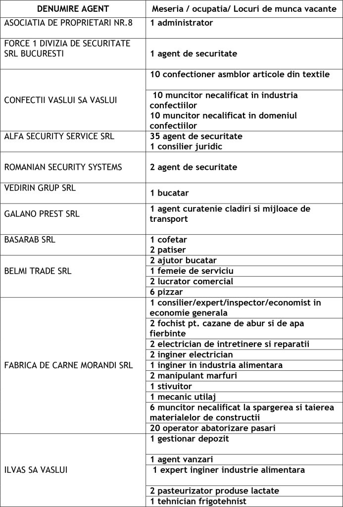 Locuri de muncă disponibile în Vaslui, Bârlad și Huși