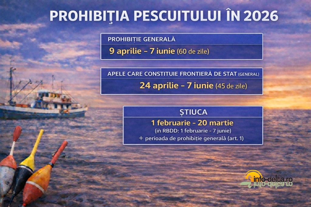 În intervalul 9 aprilie – 7 iunie anul curent, deci pentru 60 de zile, orice formă de pescuit va fi interzisă în țara noastră, iar măsura se referă la orice viețuitoare care trăiește în apă (pești, crustacee, moluște și altele).