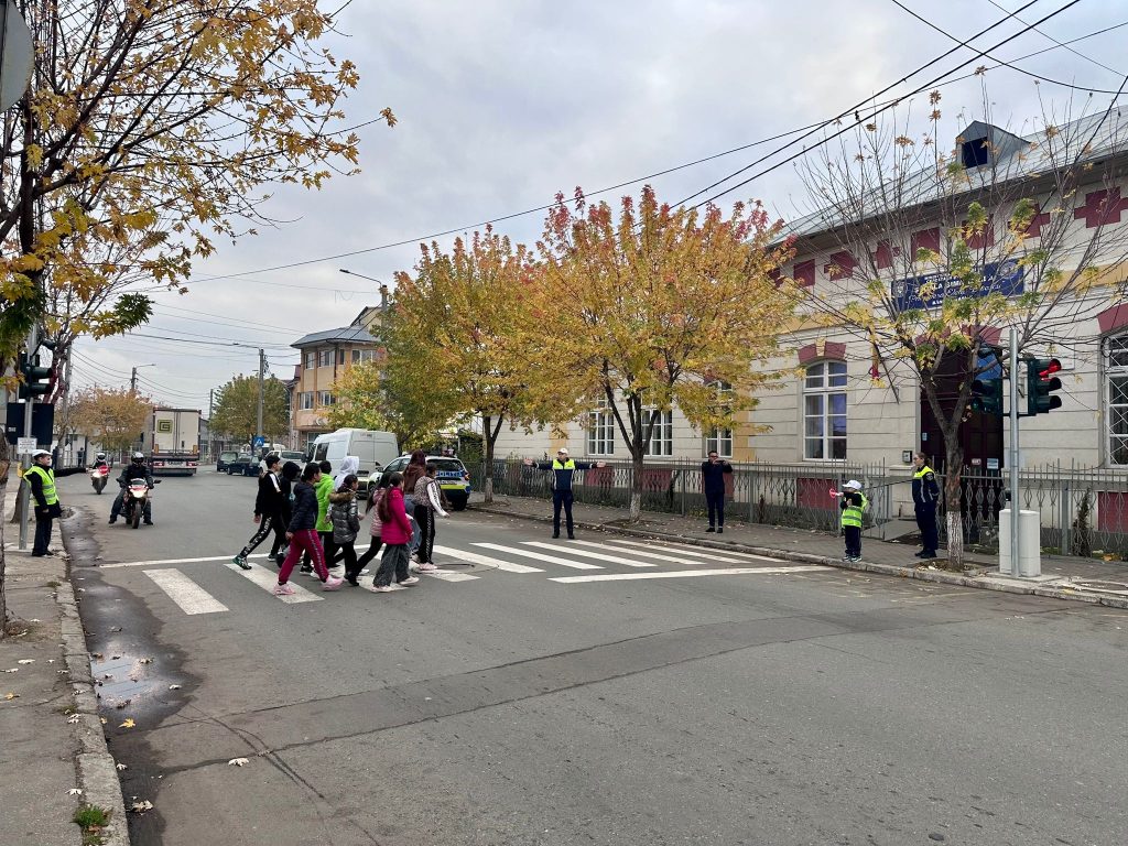 În proximitatea școlilor, polițiștii rutieri au continuat activitățile practice alături de copii, implicându-i activ în patrulele școlare. Elevii au fost echipați cu veste reflectorizante, palete și șepci inscripționate, fiind învățați pas cu pas regulile de circulație și importanța adoptării unui comportament responsabil în trafic. Sub supravegherea polițiștilor, cei mici au dirijat traficul din zona trecerilor pentru pietoni, demonstrând atenție, spirit civic și responsabilitate. De asemenea, tinerii au fost încurajați să adopte un comportament responsabil în trafic și să devină mesageri ai siguranței rutiere în comunitățile lor. (D.R.)