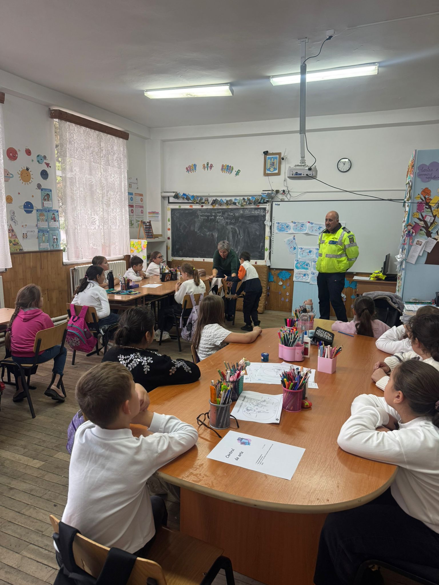 În proximitatea școlilor, polițiștii rutieri au continuat activitățile practice alături de copii, implicându-i activ în patrulele școlare. Elevii au fost echipați cu veste reflectorizante, palete și șepci inscripționate, fiind învățați pas cu pas regulile de circulație și importanța adoptării unui comportament responsabil în trafic. Sub supravegherea polițiștilor, cei mici au dirijat traficul din zona trecerilor pentru pietoni, demonstrând atenție, spirit civic și responsabilitate. De asemenea, tinerii au fost încurajați să adopte un comportament responsabil în trafic și să devină mesageri ai siguranței rutiere în comunitățile lor. (D.R.)