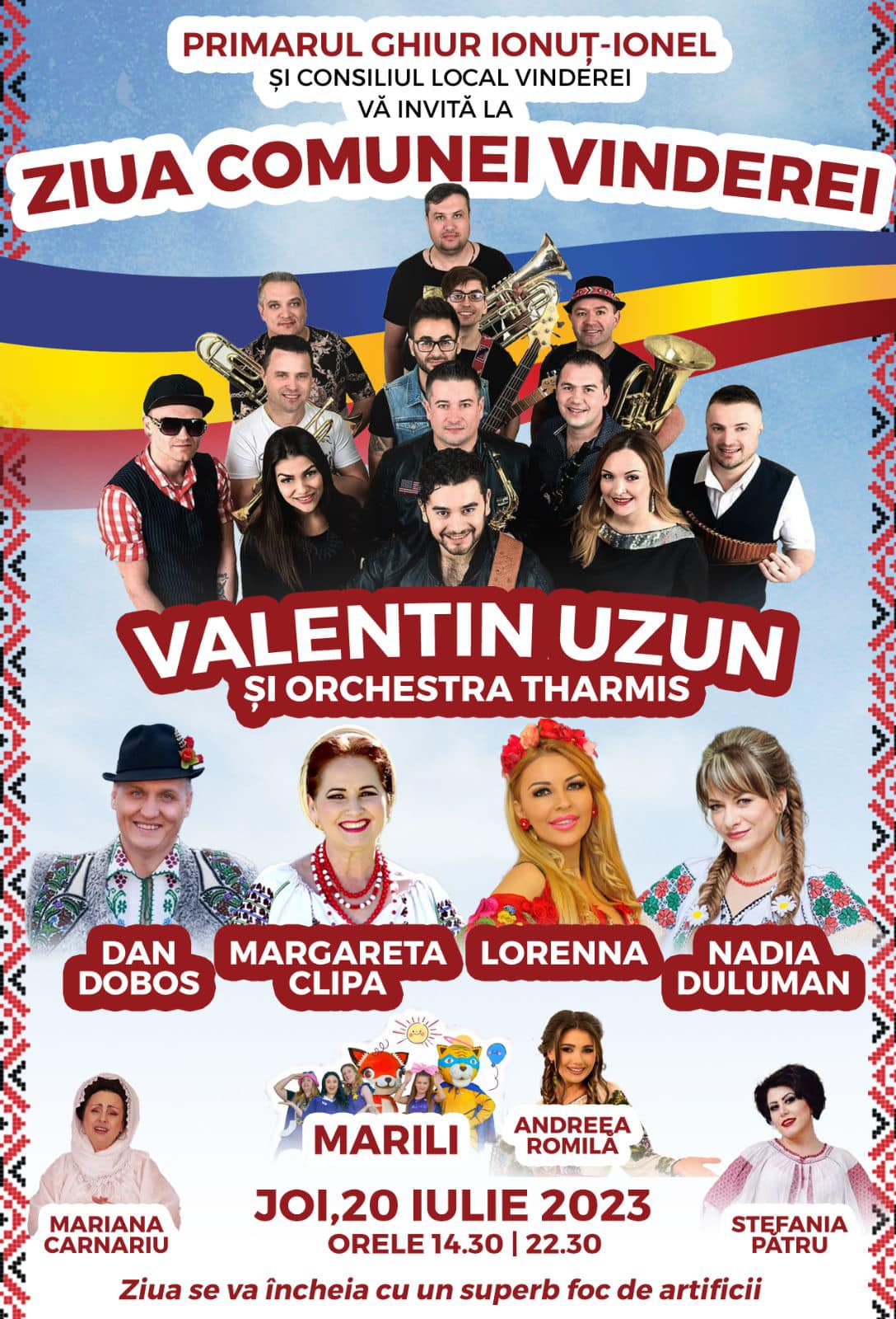 S-au împlinit 7 ani de când mă aflu în funcția de primar al comunei Vinderei. În acești ani, comuna noastră a cunoscut o dezvoltare reală, cu investiții de peste 27 de milioane de euro în proiecte de infrastructură rutieră, apă, canalizare, iluminat public, terenuri de sport, parc, grădiniță, reabilitare școli, înființare grădiniță comunitară și construcția platformelor de gunoi de grajd etc. A sosit timpul să organizăm Zilele Comunei așa cum doriți, cu voie bună și petrecere frumoasă, onorând tradițiile și obiceiurile strămoșilor noștri. În data de 20 iulie 2023, începând cu ora 14:30, vă așteptăm să sărbătorim împreună Ziua comunei Vinderei, alături de interpreți de muzică populară și trupa Marili, cu un concert dedicat copiilor. Ziua se va încheia cu un frumos foc de artificii.