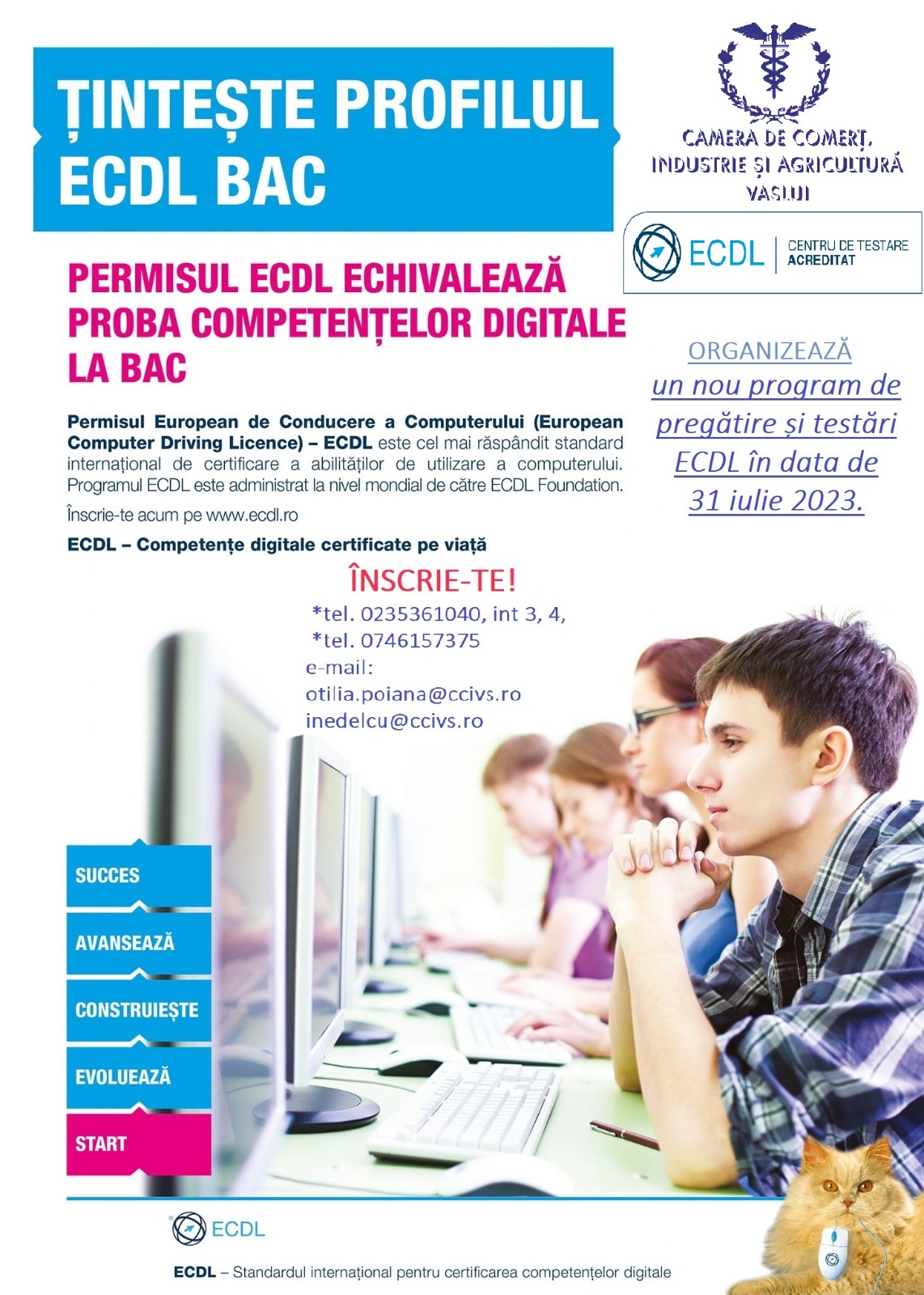 Camera de Comerț, Industrie și Agricultură (CCIA) Vaslui demarează un nou program de pregătire și testări ECDL în data de 31 iulie 2023.