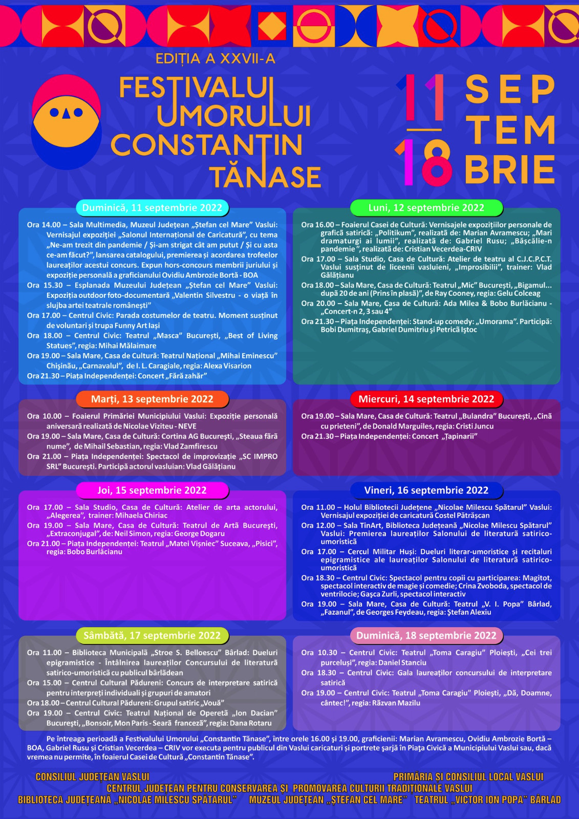 Programul celei de-a XXVII-a ediții a Festivalului de Umor “Constantin Tănase”, Vaslui, 11-18 septembrie