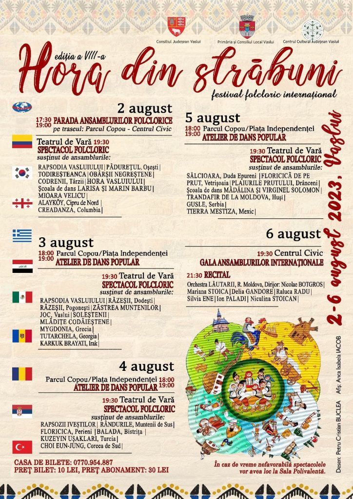 Programul Festivalui Folcloric Internațional „Hora din străbuni” 2 – 6 August 2023 Vaslui