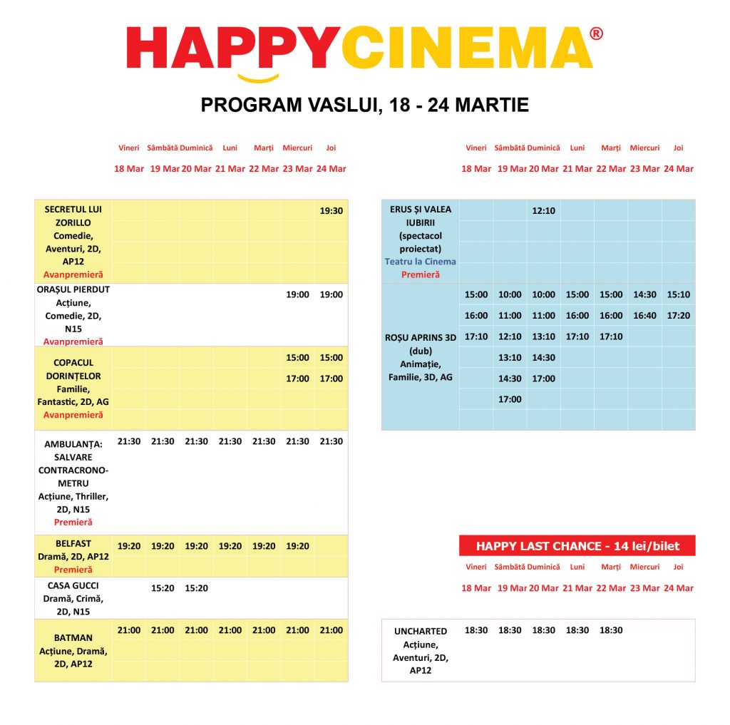 Home Cultura Programul Happy Cinema Vaslui pentru săptămâna 18-24 martie 2022