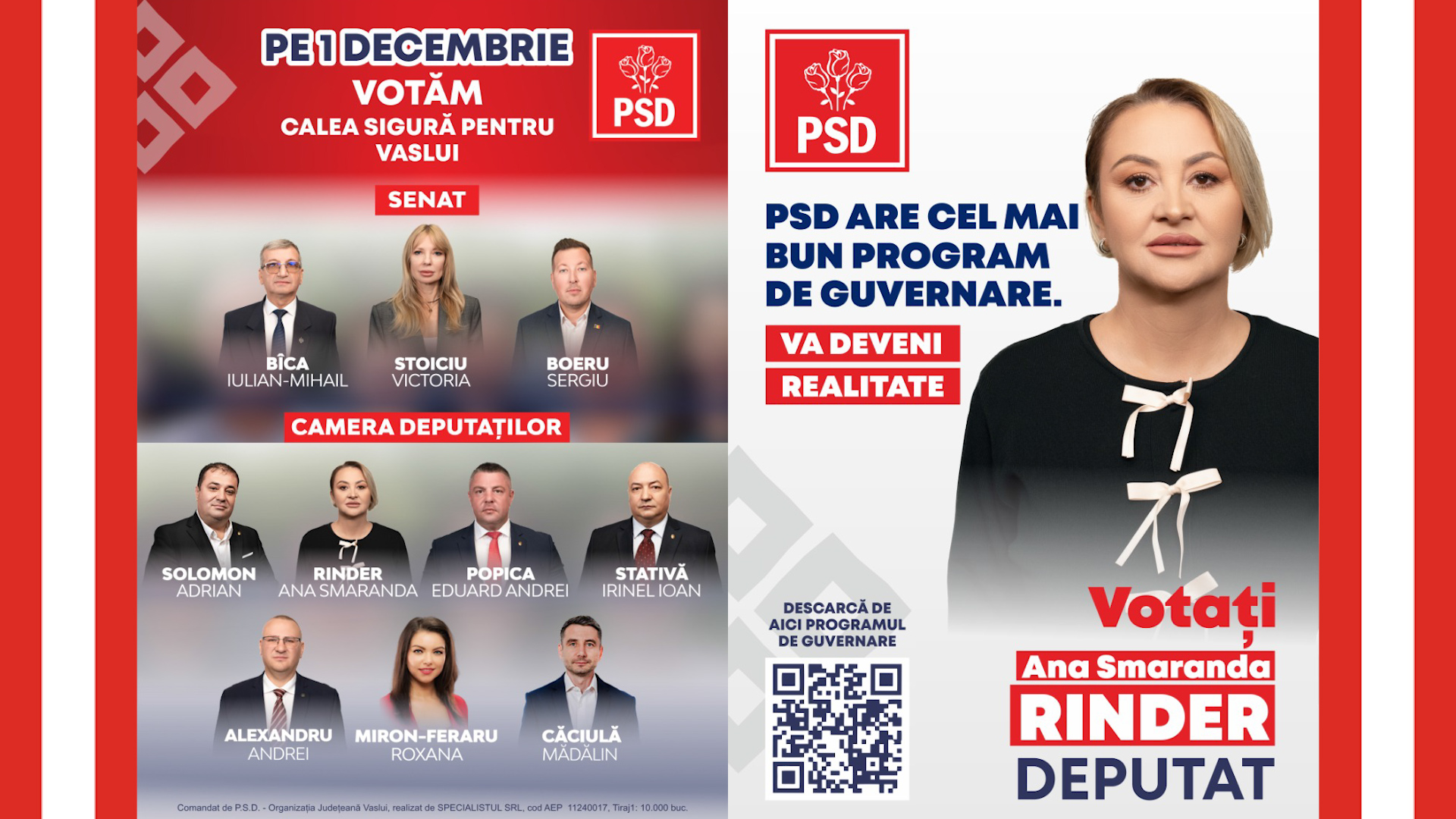 Echipa de campanie a PSD Vaslui, având-o alături pe Ana Smaranda Rinder, candidată pentru Camera Deputaților la alegerile din 1 decembrie, a luat la pas o parte din comunele județului.