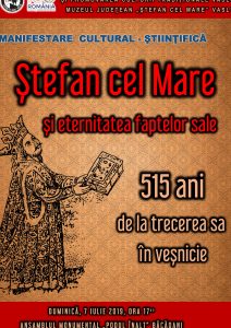 Cu ocazia împlinirii a 515 ani de la trecerea din istorie în veșnicie a măritului voievod Ștefan cel Mare al Țării Moldovei (1457-1504), Muzeul Județean „Ştefan cel Mare” Vaslui – alături de Consiliul Județean Vaslui, Centrul Militar Județean Vaslui, Brigada 15 Mecanizată „Podul Înalt” Iași și Centrul Județean pentru Conservarea și Promovarea Culturii Tradiționale Vaslui – organizează, ca de fiecare dată, o amplă manifestare cultural-științifică, intitulată „Ștefan cel Mare și eternitatea faptelor sale. 515 ani de la trecerea sa în veșnicie ”.