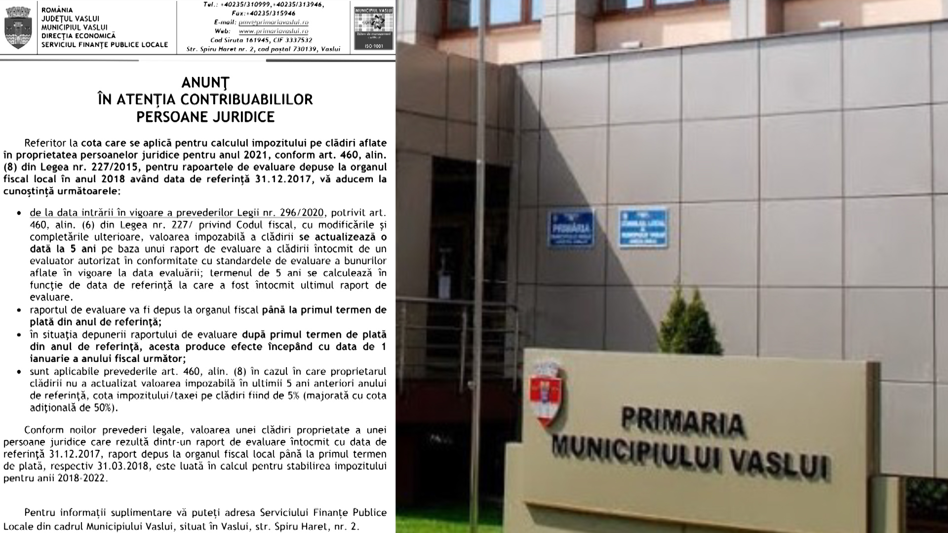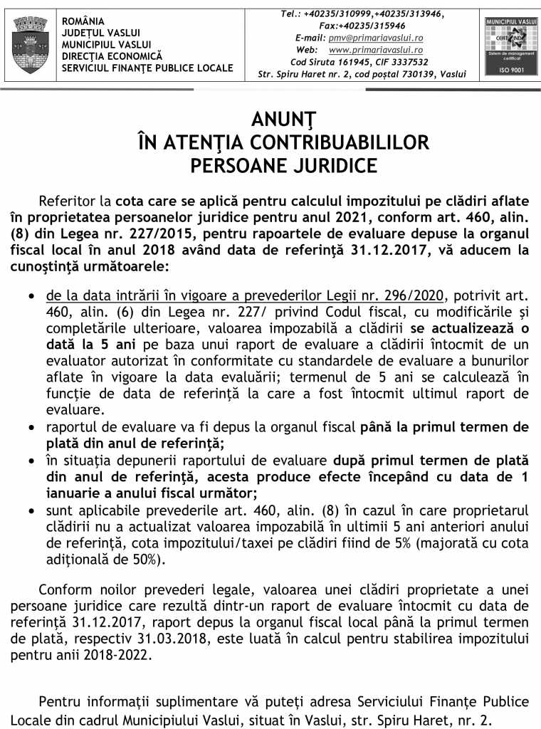 Home Emisiuni VIDEO//ANUNȚUL PRIMĂRIEI MUNICIPIULUI VASLUI PENTRU CONTRIBUABILI PERSOANE JURIDICE