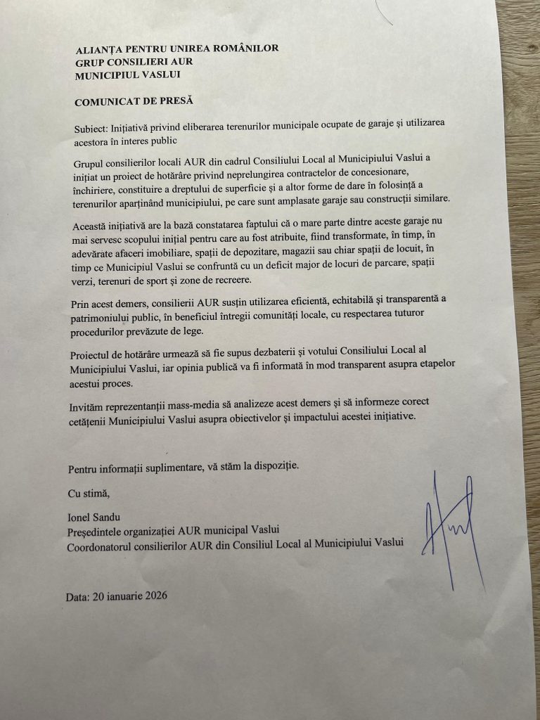 Consilierii AUR Vaslui cer eliberarea terenurilor municipale ocupate de garaje și redarea lor comunității