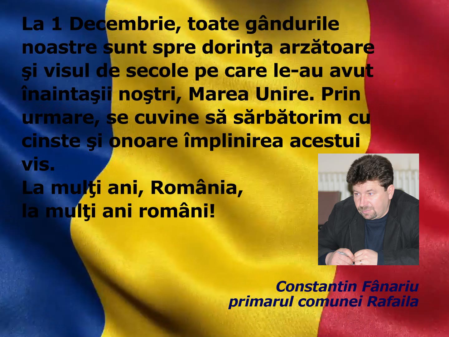 Home Emisiuni VIDEO// MESAJ DE ZIUA NAȚIONALĂ A ROMÂNIEI – CONSTANTIN FÂNARIU, PRIMARUL COMUNEI RAFAILA