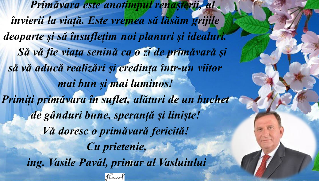 Să vă fie viața senină ca o zi de primăvară și să vă aducă realizări și credința într-un viitor mai bun și mai luminos!