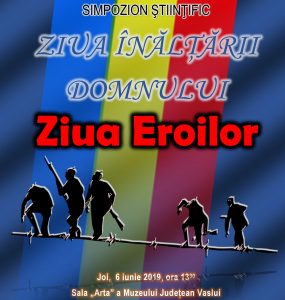 Muzeul Județean „Ștefan cel Mare” Vaslui – aflat sub egida Consiliului Județean Vaslui – organizează joi, 6 iunie, ora 13.30 în Sala „Arta ” a muzeului, simpozionul științific „Ziua Înălțării Domnului – Ziua Eroilor”, în colaborare cu Centrul Militar Județean Vaslui și Asociația Națională a Veteranilor de Război – Filiala Județeană „Peneș Curcanul” Vaslui.